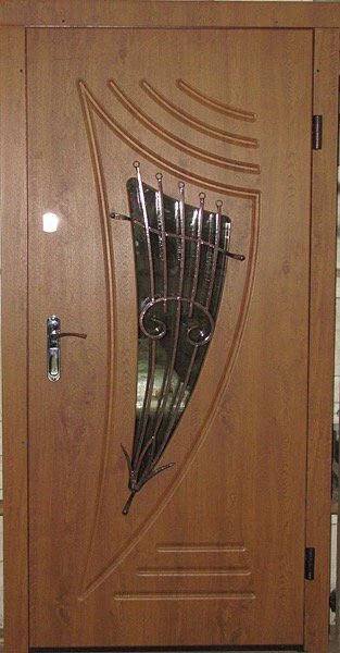 Часто декорирование дверей ковкой используют вместе со стеклом, отделывают витражным узором, используют зеркальные вставки. Стекло в этом случае применяется антивандальное, с трудом поддающееся разрушению.