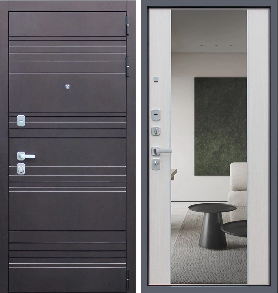 Надежная входная Дверь Дуэт с зеркалом премиум класса по цене 46 985 руб. Большая толщина стали защитит от проникновения в ваш дом, квартиру или коттедж. Используется очень качественная фурнитура: замки, цилиндры, ручки, защелки. Покрытие и отделка двери изготовлено под внимательным контролем производителя. Дверь имеет долгий срок службы и гарантию.