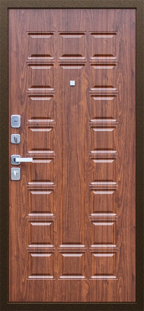 Надежная входная Дверь Спартак Орех темный премиум класса по цене 33 935 руб. Большая толщина стали защитит от проникновения в ваш дом, квартиру или коттедж. Используется очень качественная фурнитура: замки, цилиндры, ручки, защелки. Покрытие и отделка двери изготовлено под внимательным контролем производителя. Дверь имеет долгий срок службы и гарантию.