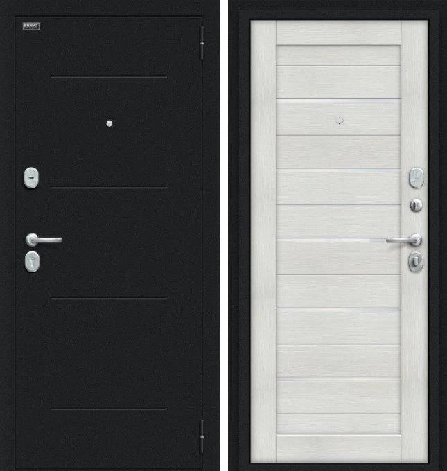 Надежная входная Браво Техно Kale Букле черное/Bianco Veralinga премиум класса по цене 33 985 руб. Большая толщина стали защитит от проникновения в ваш дом, квартиру или коттедж. Используется очень качественная фурнитура: замки, цилиндры, ручки, защелки. Покрытие и отделка двери изготовлено под внимательным контролем производителя. Дверь имеет долгий срок службы и гарантию.