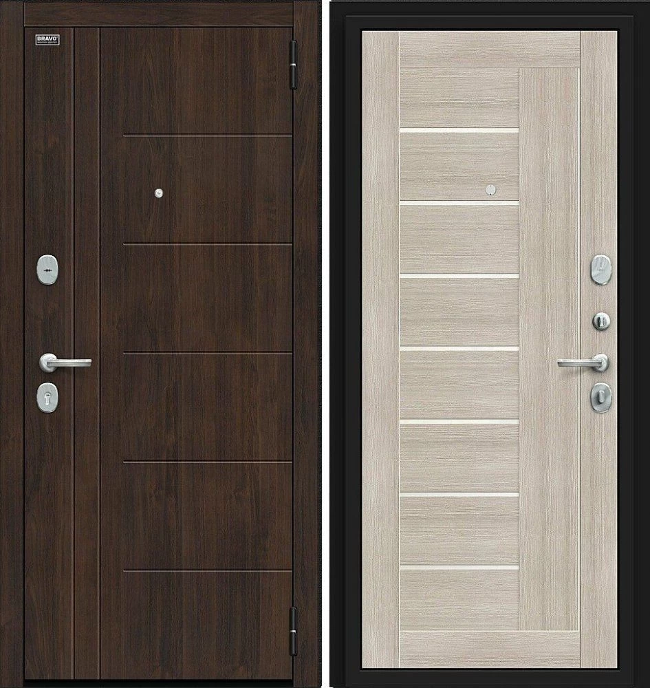 Надежная входная Дверь Браво Модерн Kale Almon/Cappuccino Veralinga премиум класса по цене 38 935 руб. Большая толщина стали защитит от проникновения в ваш дом, квартиру или коттедж. Используется очень качественная фурнитура: замки, цилиндры, ручки, защелки. Покрытие и отделка двери изготовлено под внимательным контролем производителя. Дверь имеет долгий срок службы и гарантию.