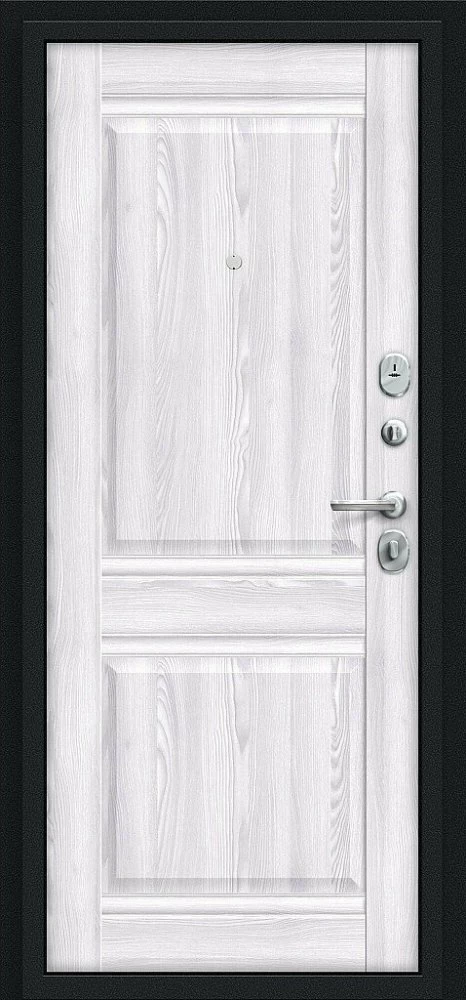 Надежная входная Дверь Браво Некст Kale Букле черное/Riviera Ice премиум класса по цене 35 405 руб. Большая толщина стали защитит от проникновения в ваш дом, квартиру или коттедж. Используется очень качественная фурнитура: замки, цилиндры, ручки, защелки. Покрытие и отделка двери изготовлено под внимательным контролем производителя. Дверь имеет долгий срок службы и гарантию.