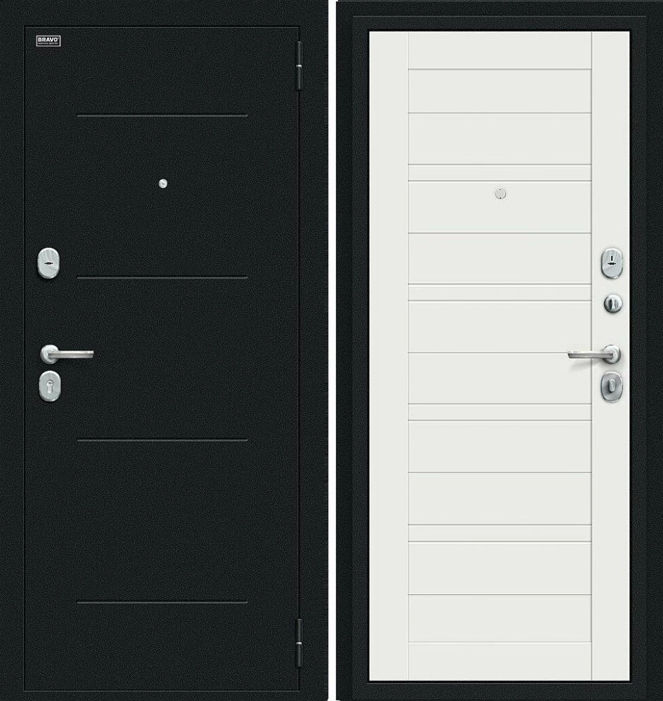 Надежная входная Дверь Браво Сити Kale Букле черное/Off-white премиум класса по цене 36 205 руб. Большая толщина стали защитит от проникновения в ваш дом, квартиру или коттедж. Используется очень качественная фурнитура: замки, цилиндры, ручки, защелки. Покрытие и отделка двери изготовлено под внимательным контролем производителя. Дверь имеет долгий срок службы и гарантию.