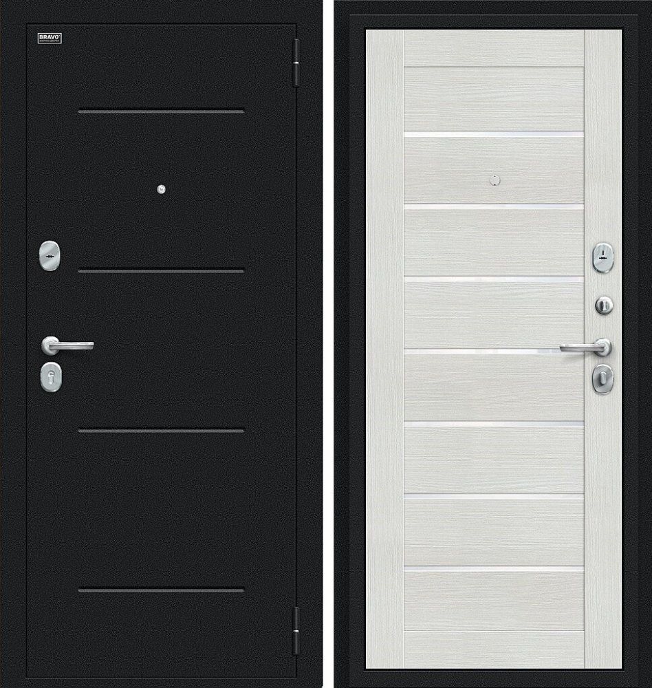 Надежная входная Дверь Браво Техно Букле черное/Bianco Veralinga премиум класса по цене 31 085 руб. Большая толщина стали защитит от проникновения в ваш дом, квартиру или коттедж. Используется очень качественная фурнитура: замки, цилиндры, ручки, защелки. Покрытие и отделка двери изготовлено под внимательным контролем производителя. Дверь имеет долгий срок службы и гарантию.