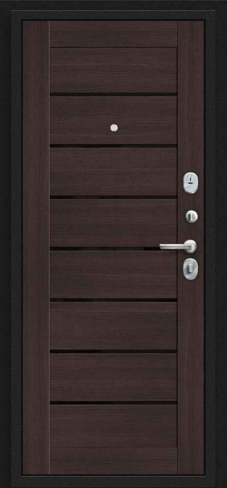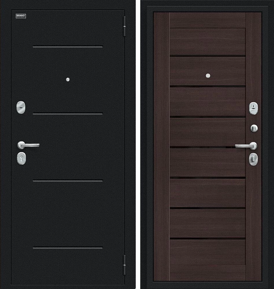 Надежная входная Дверь Браво Техно Букле черное/Wenge Veralinga премиум класса по цене 31 085 руб. Большая толщина стали защитит от проникновения в ваш дом, квартиру или коттедж. Используется очень качественная фурнитура: замки, цилиндры, ручки, защелки. Покрытие и отделка двери изготовлено под внимательным контролем производителя. Дверь имеет долгий срок службы и гарантию.