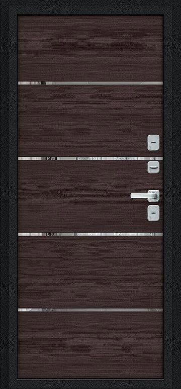 Надежная входная Дверь Браво Thermo Лайн/BChrome Букле черное/Wenge Melinga премиум класса по цене 45 985 руб. Большая толщина стали защитит от проникновения в ваш дом, квартиру или коттедж. Используется очень качественная фурнитура: замки, цилиндры, ручки, защелки. Покрытие и отделка двери изготовлено под внимательным контролем производителя. Дверь имеет долгий срок службы и гарантию.