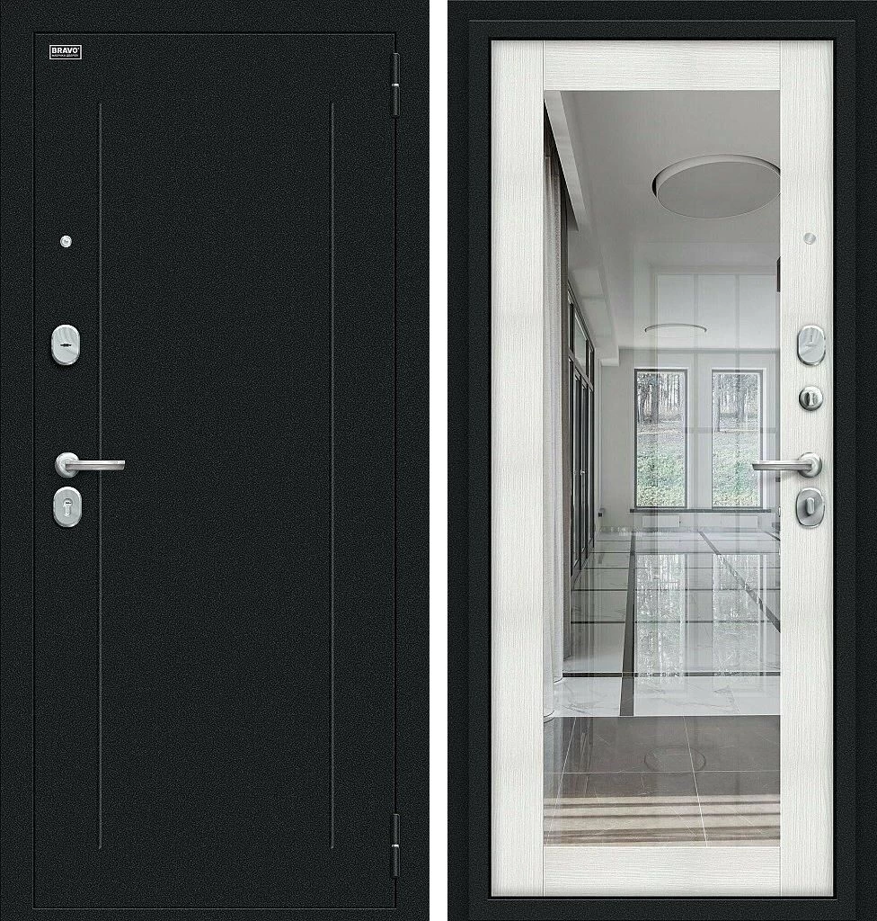 Надежная входная Входная дверь Флэш Букле черное/Bianco Veralinga BR4237 премиум класса по цене 33 217 руб. Большая толщина стали защитит от проникновения в ваш дом, квартиру или коттедж. Используется очень качественная фурнитура: замки, цилиндры, ручки, защелки. Покрытие и отделка двери изготовлено под внимательным контролем производителя. Дверь имеет долгий срок службы и гарантию.