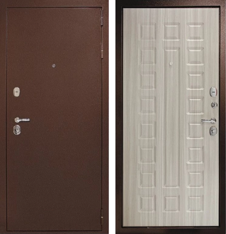 Надежная входная Дверь Рубикон 1 Медь Сандал белый премиум класса по цене 32 555 руб. Большая толщина стали защитит от проникновения в ваш дом, квартиру или коттедж. Используется очень качественная фурнитура: замки, цилиндры, ручки, защелки. Покрытие и отделка двери изготовлено под внимательным контролем производителя. Дверь имеет долгий срок службы и гарантию.