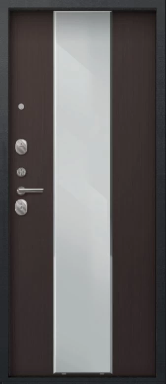 Надежная входная Дверь A-04 черный сатин - лиственница тёмная зеркало премиум класса по цене 33 835 руб. Большая толщина стали защитит от проникновения в ваш дом, квартиру или коттедж. Используется очень качественная фурнитура: замки, цилиндры, ручки, защелки. Покрытие и отделка двери изготовлено под внимательным контролем производителя. Дверь имеет долгий срок службы и гарантию.