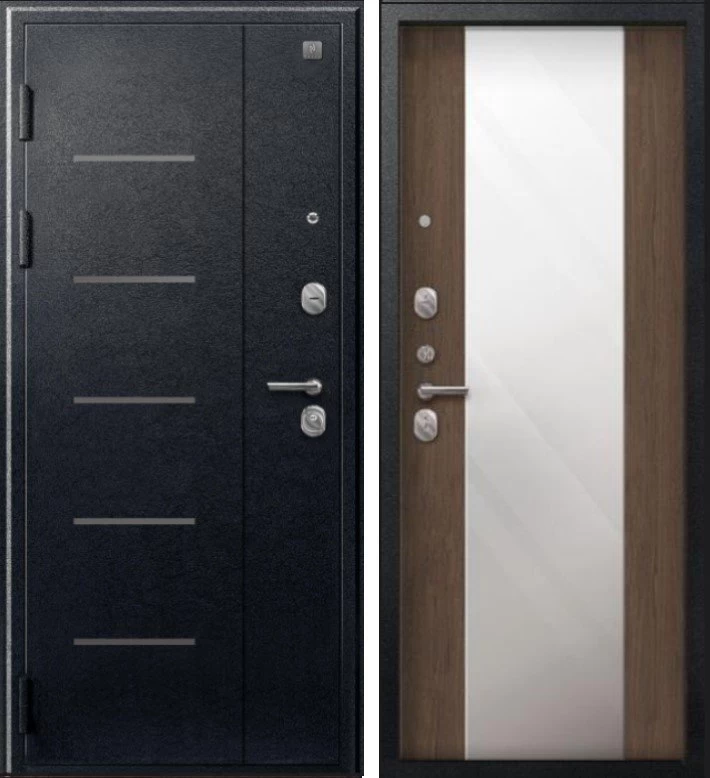 Надежная входная Дверь V-04 Черный муар - Миндаль Зеркало премиум класса по цене 42 335 руб. Большая толщина стали защитит от проникновения в ваш дом, квартиру или коттедж. Используется очень качественная фурнитура: замки, цилиндры, ручки, защелки. Покрытие и отделка двери изготовлено под внимательным контролем производителя. Дверь имеет долгий срок службы и гарантию.