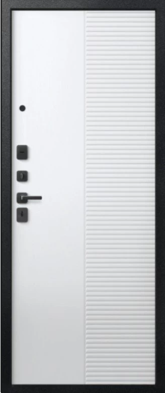Надежная входная Дверь V-18 Черный муар + Кашемир графит - Кашемир Белый премиум класса по цене 46 485 руб. Большая толщина стали защитит от проникновения в ваш дом, квартиру или коттедж. Используется очень качественная фурнитура: замки, цилиндры, ручки, защелки. Покрытие и отделка двери изготовлено под внимательным контролем производителя. Дверь имеет долгий срок службы и гарантию.